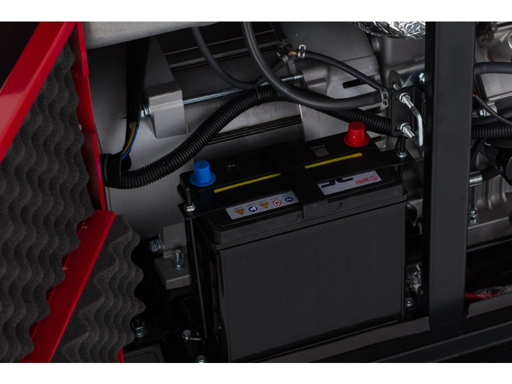 Professionelles schallgedämmtes Dieselaggregat für den einphasigen und dreiphasigen Betrieb (230 / 400 V), ausgelegt für den Dauerbetrieb, die Notstromversorgung von Objekten sowie anspruchsvolle professionelle Anwendungen. Es bietet eine Nennleistung von bis zu 11 kW (400 V), Motorvorwärmung, elektrischen Start und einen stabilen Ausgang dank AVR-Spannungsregelung.