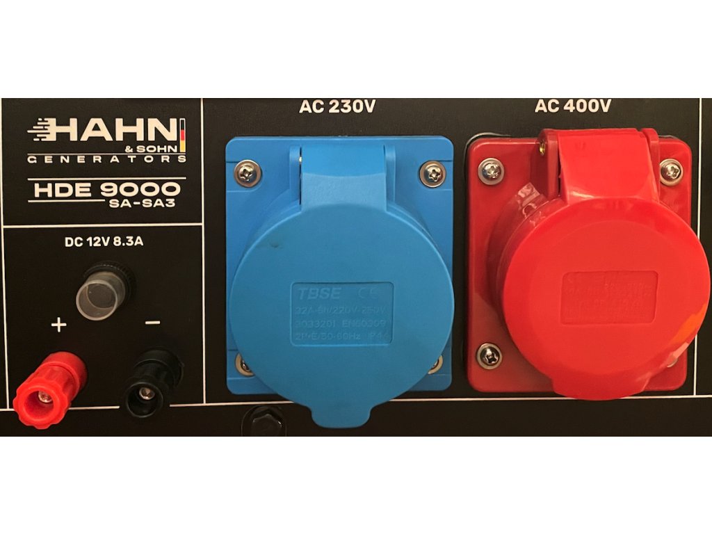 Für Vielseitigkeit ist der Generator mit 3 Steckdosen ausgestattet – 230V (16A), 400V (32A) und 12V (8,3A). So können Sie alle Arten von Geräten und Elektronik anschließen – von leistungsstarken Maschinen bis zu empfindlichen elektronischen Geräten.