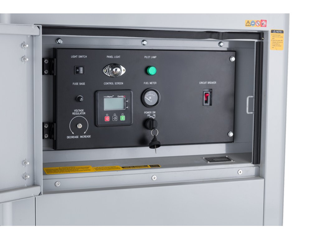 Der Generator ist mit einem ergonomischen Bedienfeld ausgestattet. Es informiert Sie über den Betriebszustand des Generators und ermöglicht eine einfache Steuerung. So ist die Bedienung des Geräts von Anfang an bequem und unkompliziert.