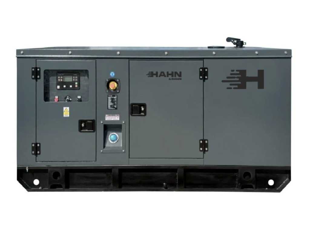 Der Dieselstromerzeuger Hahn & Sohn HDE400RST3 stellt eine zuverlässige und robuste Stromquelle für anspruchsvolle Anwendungen dar. Es handelt sich um eine schallgedämmte stationäre Ausführung auf Rahmen mit integriertem Kraftstofftank.