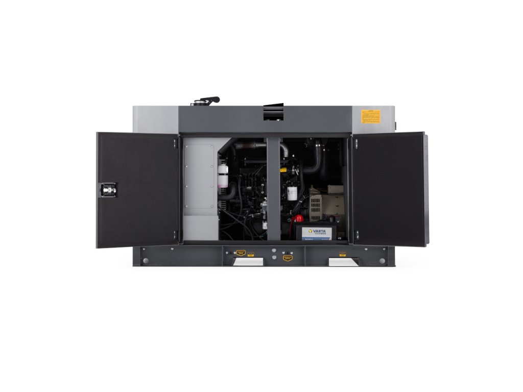 Der Generator ist mit einer starken schall- und vibrationsgedämmten Abdeckung ausgestattet. Mit einer Lautstärke von nur 51 dB arbeitet das Aggregat extrem leise und störungsarm. Ein weiterer Vorteil der hochwertigen Verkleidung ist der Schutz vor äußeren Einflüssen.