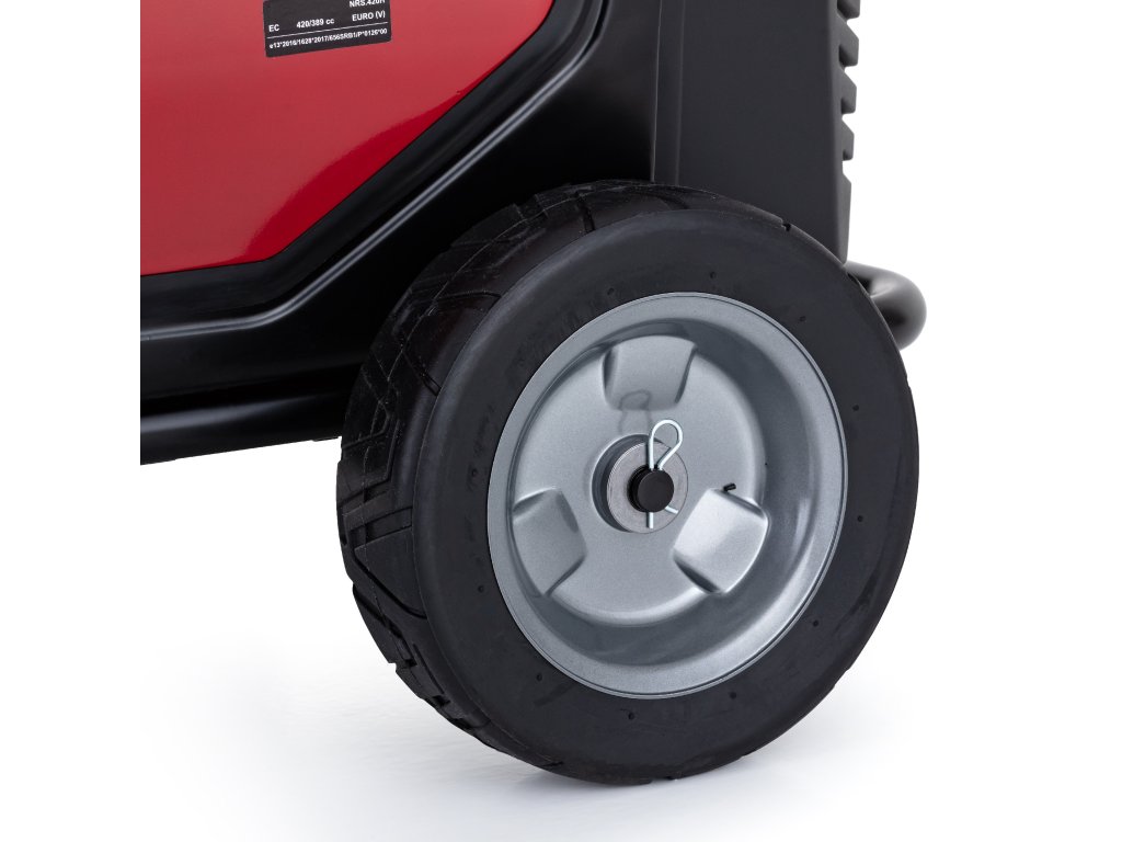 Im Lieferumfang ist ein praktisches Transportsystem mit Rädern enthalten, mit dem sich der Generator mühelos von Ort zu Ort bewegen lässt. Die Räder sind zudem auch für unwegsames Gelände geeignet.