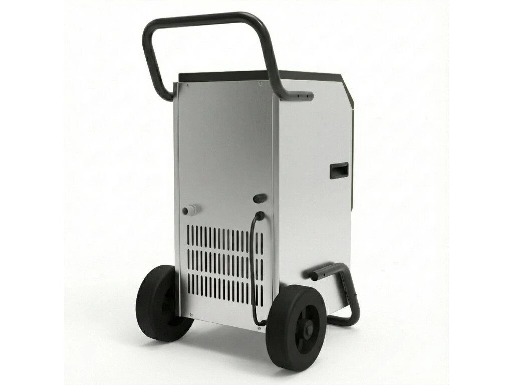 Compact, mobile, and powerful dehumidifier for professional use with a capacity of 50 l/day, airflow of 450 m³/h, tank capacity 5.5 l, and environmentally friendly refrigerant R290. Suitable for areas of approximately 40–50 m². Integrated operating hours counter.