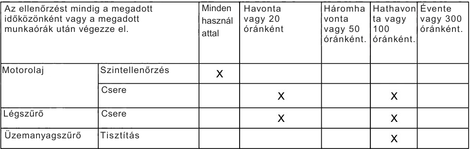 A megfelelő karbantartás elengedhetetlen a berendezés biztonságos és hibamentes működéséhez, ezért javasoljuk az összes szűrő cseréjét a mellékelt táblázat szerint.