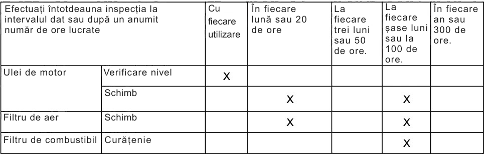 Întreținerea corectă este esențială pentru funcționarea sigură și fără defecțiuni a echipamentului, de aceea recomandăm înlocuirea tuturor filtrelor conform tabelului atașat.
